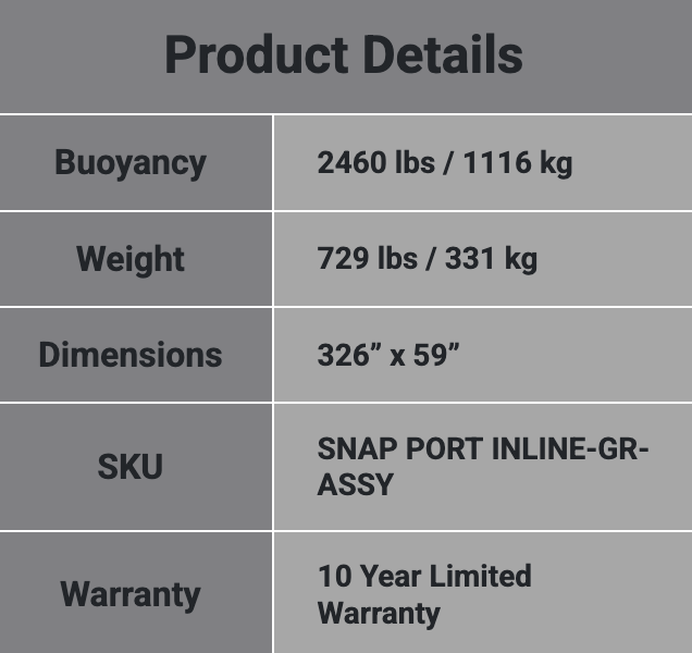 The Snap Port Inline is the latest addition to the Snap Port series, combining all of the best-in-class features of the Snap Port with our latest product innovation, the Snap Port Extension. The Snap Port Inline can accommodate multiple watercraft simultaneously and fit two units side-by-side within a 10′ slip. This makes it the ideal choice for both narrow waterways and commercial applications, such as marinas and PWC rental operations.
